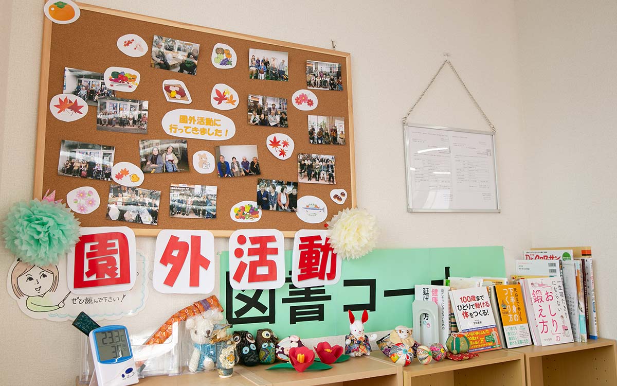朝起きてから寝るまでの色々な動作をご家族の方に頼ることなく、自分の事は自分で出来る体力・筋力をいつまでも持ち続けていただく為に様々な『体操』をしています。体操と言っても激しいものではなくとっても簡単なものです。利用者様の中には「家では出来ない事がここでは出来る。ここへ来ると何故か楽しくて元気になる」とおっしゃって頂けている方もいらっしゃいます。